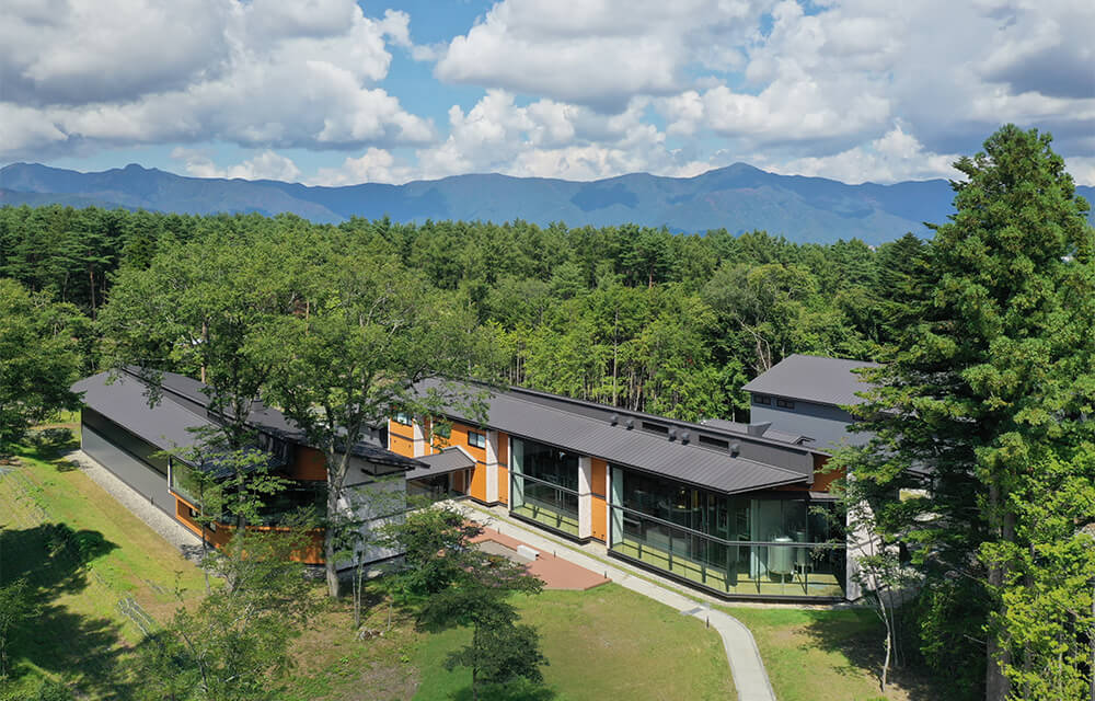 標高1000mに位置し、周辺は森林に囲まれています。