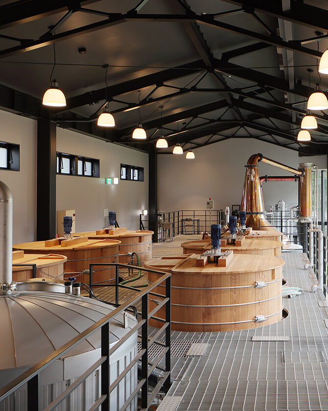 富士の清らかな天然水、木桶発酵、直火蒸溜、そして豊かな自然に育まれた富士樹海熟成庫。ウイスキー蒸溜における最高の設備と環境を整え、日本各地から世界一のウイスキーを目指す、情熱溢れる優秀な造り手たちが集結しました。